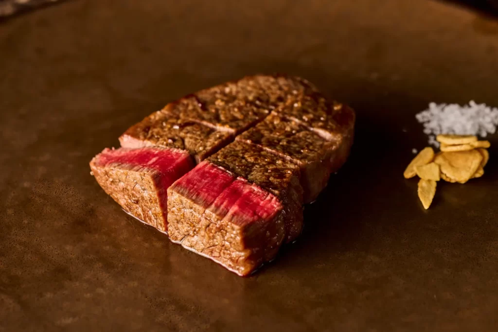 前菜の後は、「大タラバ蟹」(または、国産大伊勢海老)や「フォアグラ」など最高の食材を鉄板で調理してきます。メインのステーキは最高級A5ランク黒毛和牛の「シャトーブリアン」を含む3種部位食べ比べができ、それぞれのお肉が持つ味わいの違いをご堪能頂けます。